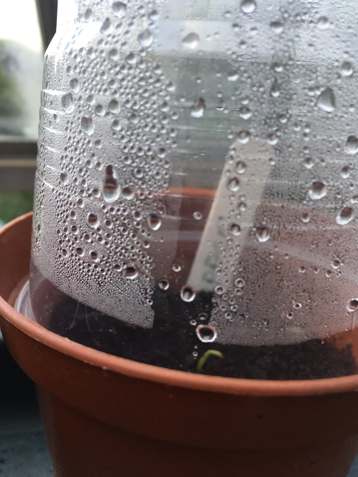 BONUS TIP: If you dont have a greenhouse and say, plant something tender in the ground or pot that you need to protect before a particularly cold snap, or you want your seeds to germinate quicker…use a plastic cup, clear plastic bag or glass/plastic cloche. Just lift it daily to circulate the air.
